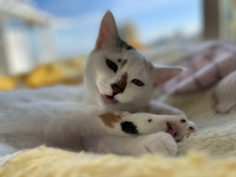| 特徴(性格など) | 名前:もっちー 保護したときは人を警戒していましたが、人との生活に慣れ遊ぶのが大好きです。ほかの猫とも仲良くできる子ですので先住猫がいてもOKです。 とってもきれいな白三毛です。 健康状態 保護時(ワクチン接種時ごとも)インターフェロンを打っています。 現在は安定しています 1回目ワクチン(3種)済 2回目ワクチン(3種)済 ウィルス検査(エイズ・白血病) 陰性 回虫駆虫ノミダニ駆虫済 猫コロナ(FIP)予防の処置をしています(100%予防ができるわけではありませんがリスクを下げるための処置です) 避妊去勢手術 未 体重がまだ2kgに満たないので獣医に相談の上まだ手術はしておりません |