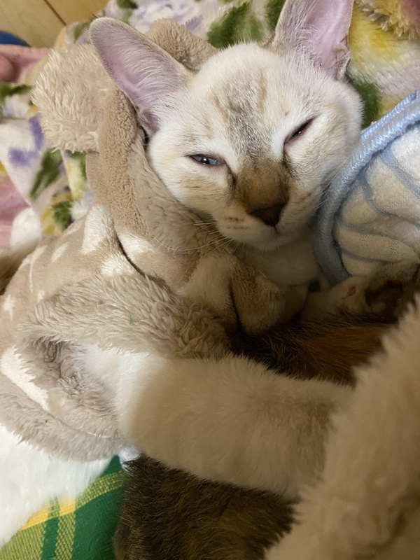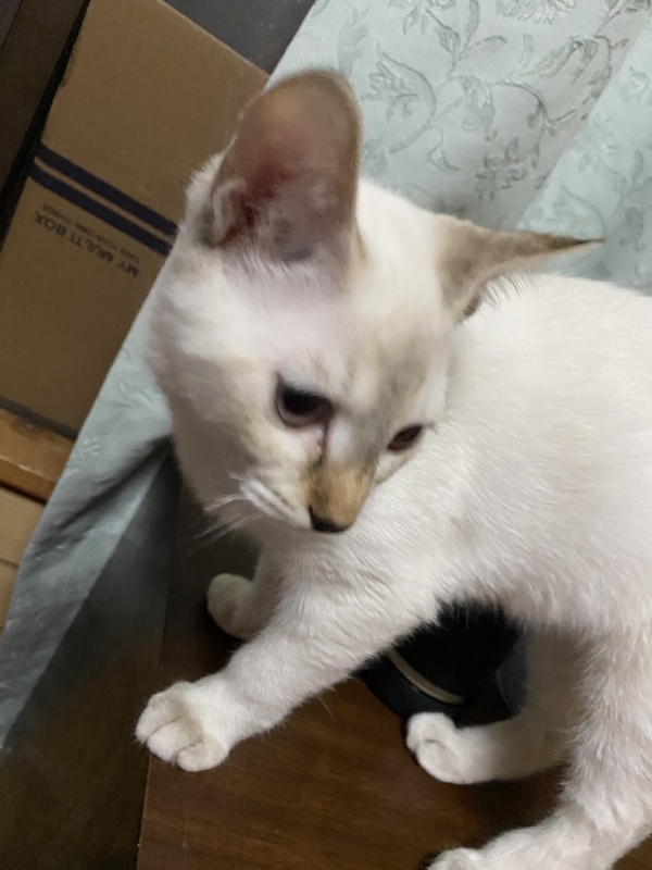 | 特徴(性格など) | 白くて目が青色です。しっぽも短くて可愛いです。耳と鼻と足の裏がちょっと黒いです。 最後に生まれた子ですがとても元気です。 |