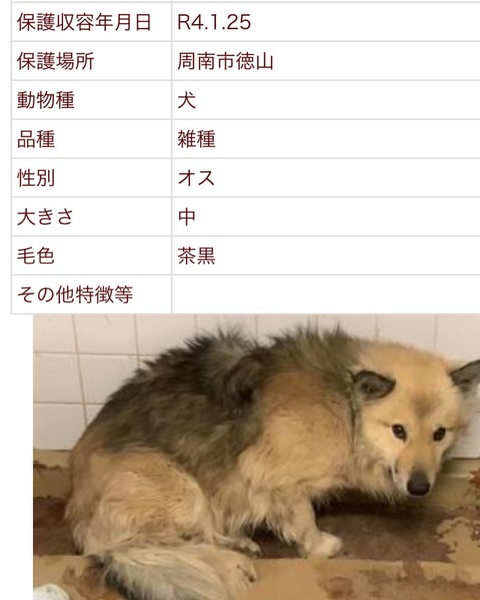 | その他(譲渡条件など) | ⚠️野犬ですのでマイナスからのスタートです 応募される前に必ずご家族の同意を確認されてからお願いいたします 《譲渡条件》 ◎単身者、高齢者の方は基本お断りしています (後見人がいる、飼育環境、状況により可能な場合もあります) ◎持ち家 ※マンションの場合10キロ以上、大きさや飼育可能頭数など大丈夫か飼育規約を必ず確認してください ◎完全室内飼育 ◎留守番時間の少ない家庭 ◎脱走対策(柵やゲート) ◎現地調査 詳しくはお問い合わせください ?安易に可哀想だからとあと先考えずその時の感情だけで引き取るのはやめてください 毎年の予防注射、フィラリア予防薬、ケガや病気をすれば医療にかけてあげる 犬の寿命も伸びています それなりの医療費はかかります 途中で止めることは出来ません! よく考えて決めてください ※直接来られる方は… 周南健康福祉センター 0834-33-6426 センターの譲渡条件に従っていただきます。 平日にお迎えができる方は、直接、センターにお問合せをしていただきお迎えも可能です。 センターは平日の8:30から17:15までです。 身分証明書とわんちゃんを入れるキャリーケースをお持ち下さい。 ※子犬でもヨチヨチ歩き以外の子はダンボールでは飛び出してしまう可能性があるので、きちんと屋根のあるキャリーケースをお持ちになって下さい。 ※お願いがあります。 センターには、くれぐれも業務に支障をきたすようなクレームの電話やメール等はご遠慮ください。 ご理解頂ければ幸いです。 ※センターへのお迎えは平日のみとなります。 土日祝のお迎えはできません。 また、センターのHPを見られて直接お迎えに行かれる方もいらっしゃいますので、その場合直接センターに行かれる方が優先となりますので、ご了承いただければと思います。 尚、高齢の方は万が一飼えなくなった際、お身内の方でお世話をして下さる方がいらっしゃる方でお願い致します。 |