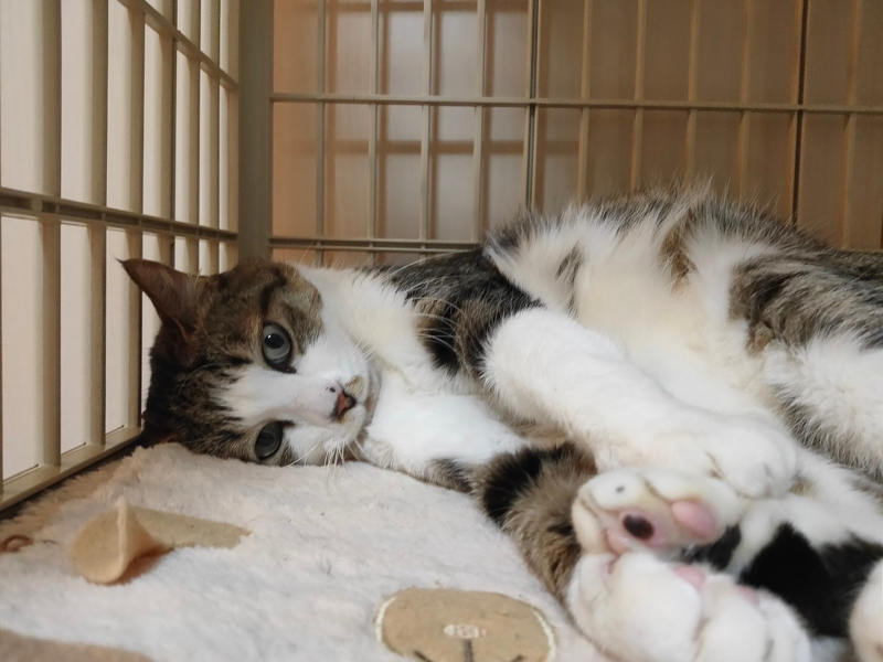 | 特徴(性格など) | 【性格】お外で頑張って生き抜いて来た元地域猫出身のキジ白猫さんのご紹介です。 仮名のチビチビは、まだこの子が子猫だった時代から餌やりをしていた方が呼んでいたので、そのままチビチビと呼んでます。 でも、全くチビチビではなくなりました(笑) 性格は大変穏やかです。 こんなに心優しい子がよくぞお外で頑張って暮らせていけたな…と驚くほどに、人に対しても他の猫さんに対しても攻撃性はゼロです。 性格はヘタレくんで、自分からぐいぐいとアピールするタイプではありません。 他の猫さんがいても『ボクはいません』と気配を消すような子です。 きっとこの子は、こうやってお外で生き抜いて来たのだと思います。 そして、慣れてくると、お膝の上が大好きです。 ゴロゴロと言いながらいつまでもお膝の上で甘えます。 チビチビくんの動画は、YouTubeちゅー猫チャンネルでご紹介しておりますのでご覧ください。 https://youtu.be/O2u4uytx5pQ そのうちベットも共にしてくれるかも? 控えめな子ですが、慣れてくると、甘えん坊さんのマザコンタイプです。 先住猫さんがいても問題ありません。 勿論、お仕事をフルタイムでお持ちのご家庭でも問題なく迎えていただけます。 こんなに穏やかで性格の良い子はなかなかいないと思います。 飼いやすい子ですので、ぜひ!よろしくお願いします。 |
