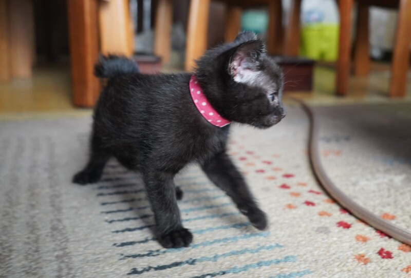 | 特徴(性格など) | 黒mix。我が家で生まれてママ猫兄弟猫とすくすく育っています。 甘えん坊で女の子らしいかわいい子です。トイレトレーニング済み。 |