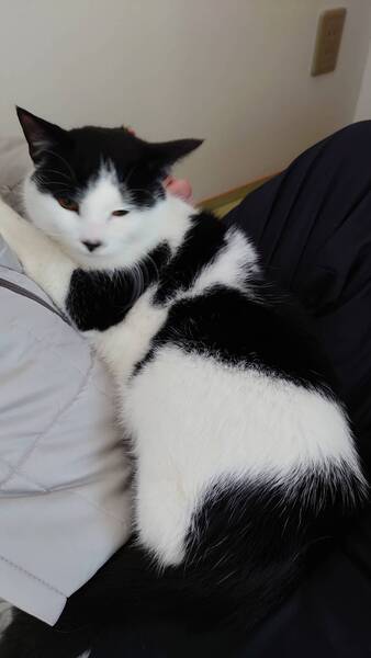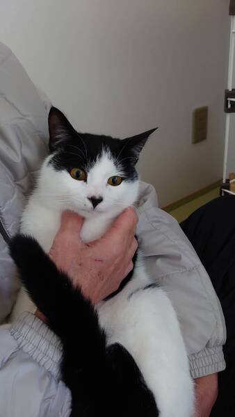 | 特徴(性格など) | 推定8カ月から10カ月だと思われます。白黒の男の子。基本的に人懐こいですが、人見知りはします。暫くは威嚇もするかもしれませんが、長い目で見守ってくださる方を希望いたします。慣れてくれれば、ゴロゴロとお膝にも乗ってくれます。 責任もって飼っていただける方でしたら、少し高齢の方、お一人暮らしの方でもお譲りしたいと思います。 |