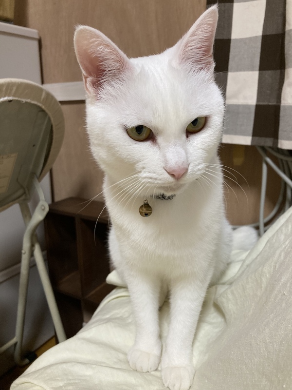 | 特徴(性格など) | 元気でやんちゃな白猫さん おもちゃで良く遊んでいます すりすりと甘えてくる人なつこい男の子です |