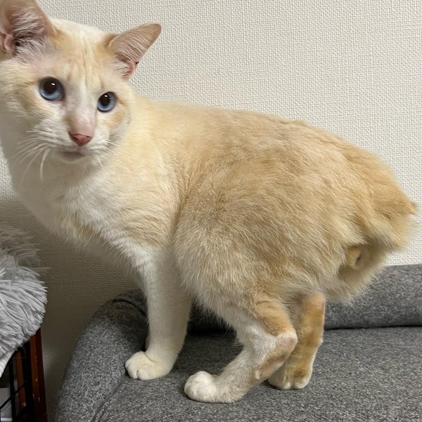| 特徴(性格など) | 保護名はシフォンくん 推定1-2歳の男の子 超甘えん坊さんで喉を鳴らしながら ゴロゴロすりすりしてきます。 抱っこやお膝でねんねもOK 遊ぶことがとにかく大好きで じゃらしをふるととてもよく遊びます。 マンクスが混ざっているのかしっぽがほぼありません。 毛はダブルコートでとても手触りがいいです 猫とは上手く付き合うのが苦手なタイプなので 1匹飼いを希望します。 普段の様子などはInstagramにアップしているので ご覧ください https://instagram.com/nekotamaan おうちに慣れるのに時間がかかるため 気長に見守って下さる方を希望 |