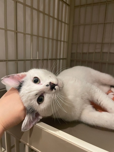 | 特徴(性格など) | おしりにハートマークのような模様がある白黒ねこです♡ 年齢はおよそ生後5ヶ月ぐらい。 甘えん坊でとっても人懐っこい男の子です。 撫でるとゴロゴロ喉をならしてとろけちゃうほどです。 とにかく甘えたい子なのでご飯よりもなでなでを優先してしまうほどです。 |
