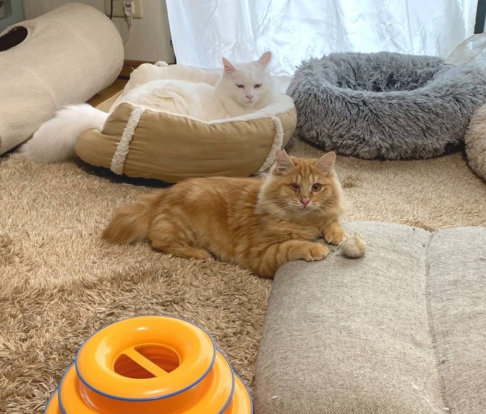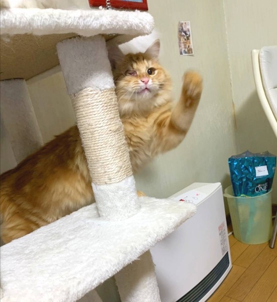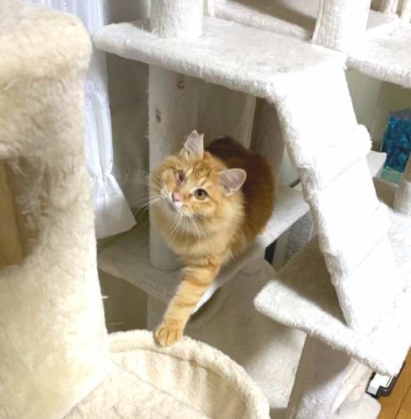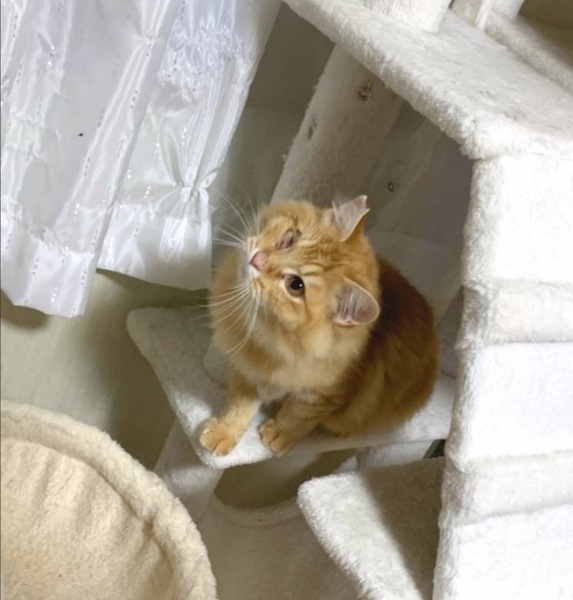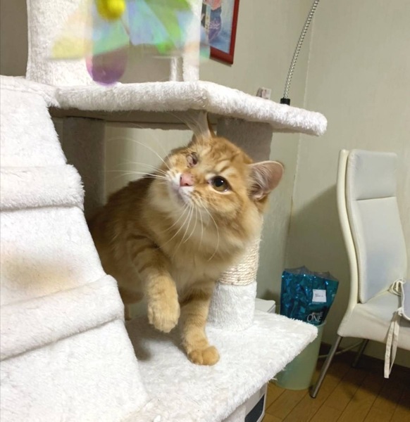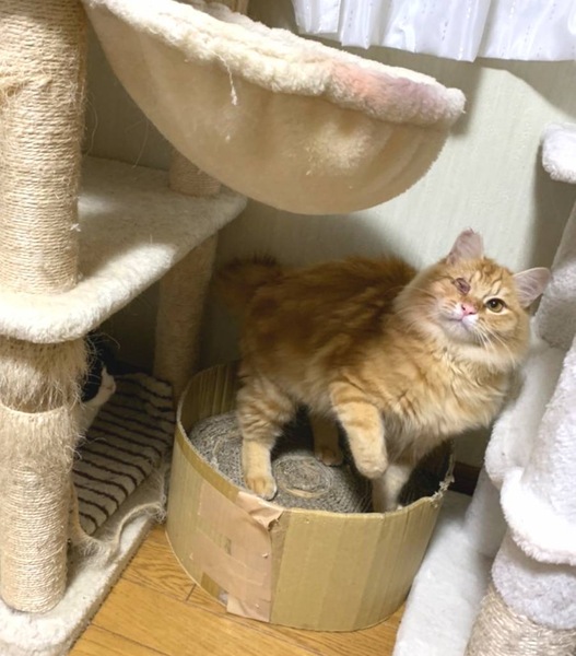 | 特徴(性格など) | 生後7ヶ月半くらいになるレッドクラッシックタビーの長毛の男の子です。 短いシッポがとても可愛いです。 少し怖がりで近づくとまだ逃げますが、ご飯やおやつの時は近づいてくるので、そのタイミングだと抱っこも出来てゴロゴロ言ってくれます。 小さい時にカラスにでも襲われたのか?3ヶ月くらいの時に初めて見かけた時すでに片眼で生活していました。 ですが、目やにが出る以外特に問題はなく、タワーに登ったり走り回ったりととても元気です。 預かりボランティアさん宅の先住猫さんたちが大好きで、遊んでー、かまってーと行くのですが、誰もかまってくれないと犬の様にクンクンと甘えた声を出します。 なので、若い遊び盛りの先住猫さんのいる家か、複数飼いを検討してあげてもらえたらうれしいです。 ★健康状態は良好です ・去勢手術済み ・エイズ&白血病ウイルス陰性 ・ノミ·ダニ駆虫済み ・検便チェック問題なし ・3種混合ワクチン2回接種済み |