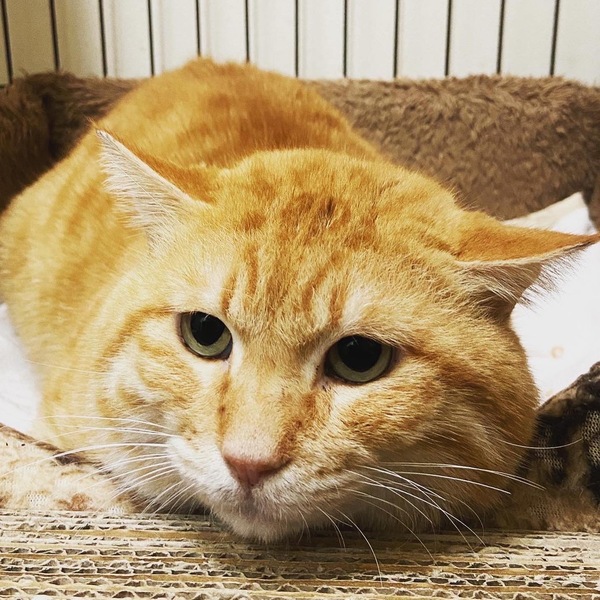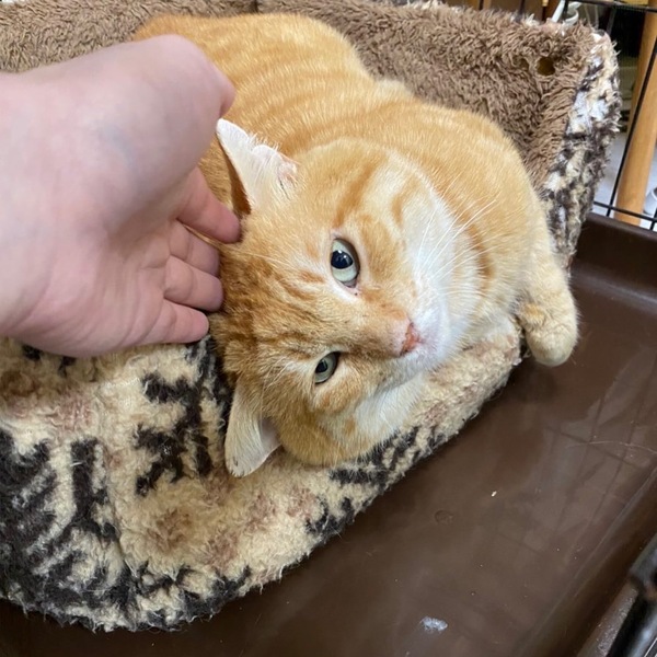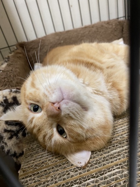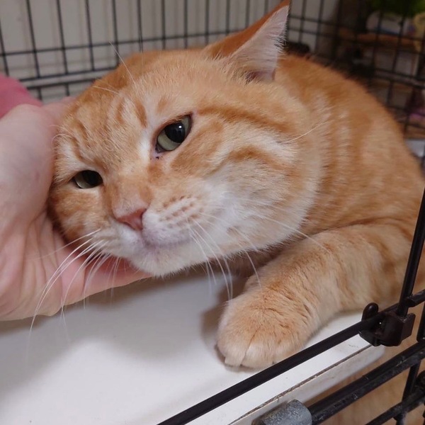 | 特徴(性格など) | 「俺、つしま」みたいなデカ顔が魅力的な茶トラの男の子です。仮名を翔平とつけました。身体は大きいですが、優しい性格でおっとりしています。動画のようにこんな大きなお顔をグリグリ撫でることが出来るのは、至福のひと時でしょう。南国育ちで大らかな性格の翔平くんと一緒に暮らしてみませんか? | ||