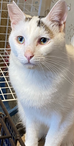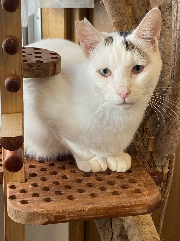 | 特徴(性格など) | 白に少し柄が入った、尻尾の短い綺麗な猫です。 三匹兄弟で保護され、こちらに来ましたが、一匹は里親さんのところで幸せに暮らしています。三匹とも慎重なタイプですが、少しずつ慣れては来ています。 慣れてしまうと甘えん坊なタイプだと思います。 |