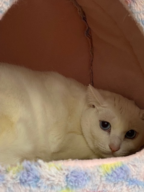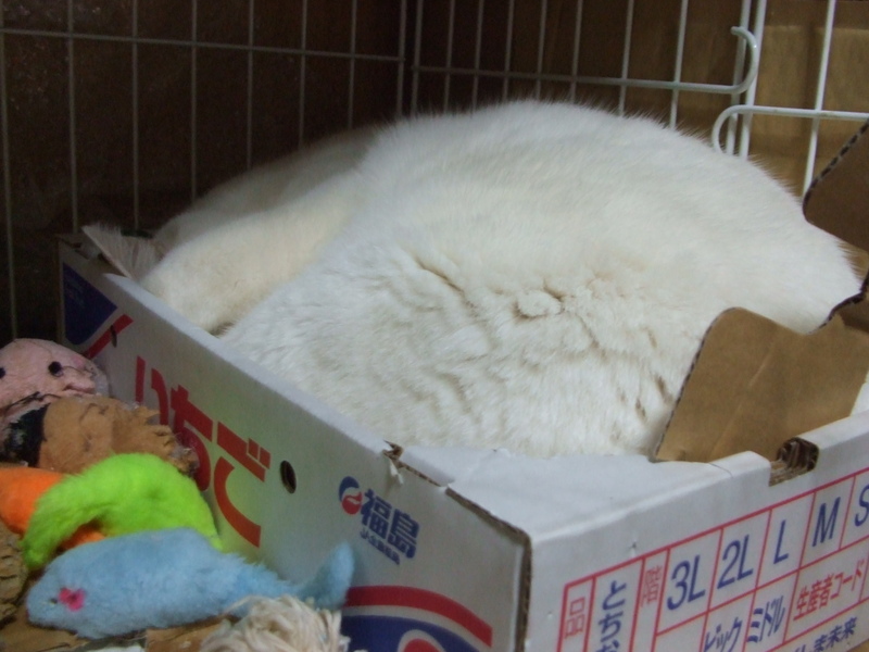 | 特徴(性格など) | 名前:マシュマロ シャム風のブルーアイで毛色はホワイト色の綺麗な子です。 保護した当時は狂暴で大変でしたが、大分落ち着いてきました。家猫修行中ですが、基本穏やかです。無理に触ろうとせずにマシュマロのペースでのんびり暮らせるお家で側にいるだけでいいよという方、又慣れるまで時間がかかると思いますが、ゆっくり慣らして下さる方を希望しています。また、側にいるだけでいいよと言う方ぜひ、マシュマロ君に会いに来てみませんか? エイズキャリアですが、現在は発症しておりません。 また猫との相性などあるため1匹飼いを希望しています。 現在の健康状態は良好です。 去勢手術済 3種混合ワクチン済 猫エイズ陽性(発症はしておりません) 猫白血病陰性 検便は陰性 蚤ダニ駆虫済 腸内寄生虫駆虫済 尻尾は30センチくらいあったのですが、喧嘩傷で腐ってしまっていた為、断尾しました。1/3くらいの長さは残っています。 ※エイズキャリアを保持していても、必ずしもエイズを発症するわけではありません。 猫によってはエイズウィルスを体内に持ちながらも、免疫機能を保持したまま天命を全うする猫は沢山います。 マシュマロ君は今の所発症はしていませんので、ストレスのないクォリティーの高い生活を送ることが出来れば発症せずに天寿を全うできるかと思います。猫エイズという疾病に何卒深いご理解を頂ける方からの応募をお待ちしております。 |