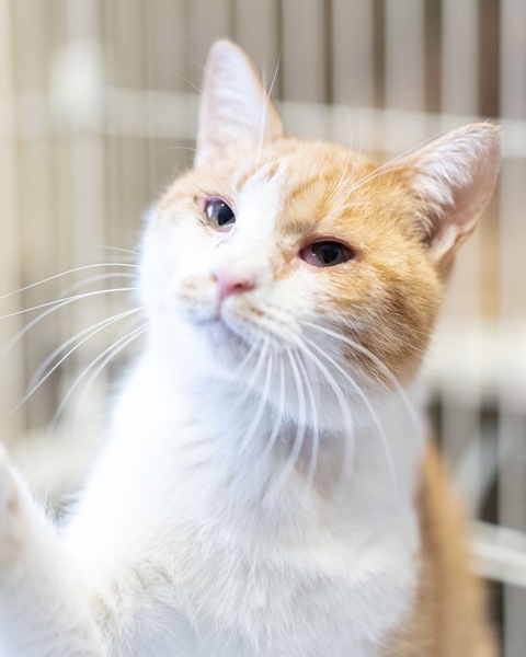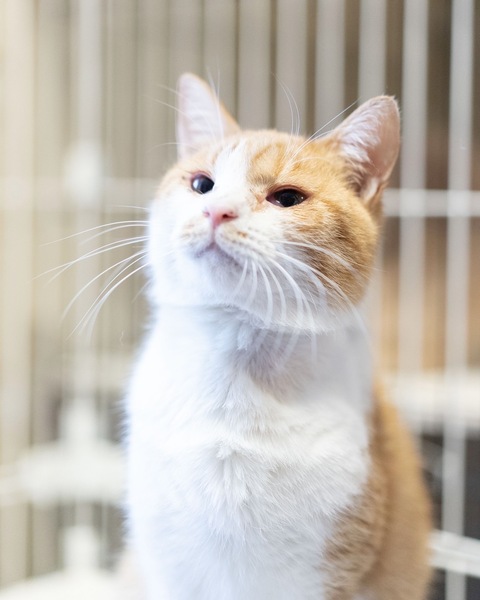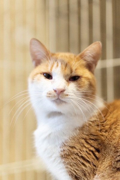 | 特徴(性格など) | 茶色と白のバランスが綺麗で、シマシマの尻尾が魅力的な男の子です。 体重は3.3キロくらい。年齢は推定3歳くらいということです。 性格は、穏やかで静かな甘えん坊です。 他の猫とも仲良くでき、一緒にも遊んでいますが、甘えん坊なところもあります。 |