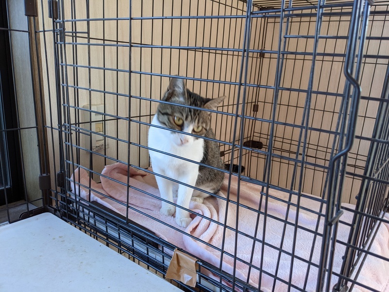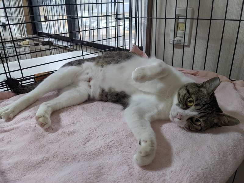 | 里親募集する理由 | 外猫ちゃんのエサ場に突然現れました。痩せて風邪も引いていたので、仕方なく保護しました。 保護猫多数の為、里親さま募集させて頂きます。 |