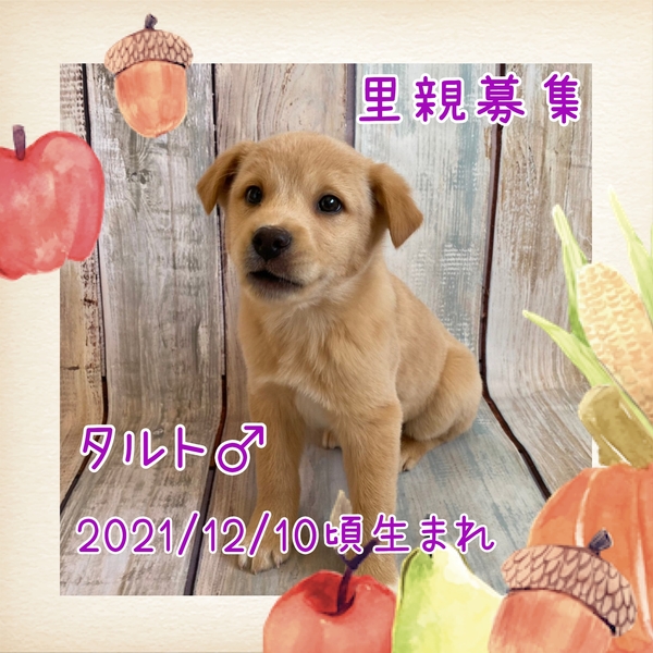 | 特徴(性格など) | 薄茶色、体重3kg(1/19測定) きょうだいの中で一番大きいタルト。マイペースな性格で遊び終えて眠くなったらキャリーへ戻って1匹で寝たりしています。 きょうだいともよく遊びますが人間にも遊ぼうと誘ってきます。 トイレはシートでほぼ出来ています。場所が変わってもできるよう、様子をみながら引き続きトレーニングをお願いします。 1日4回ごはんを食べていることなど、子犬なのでお留守番の短いご家庭を希望します。 |