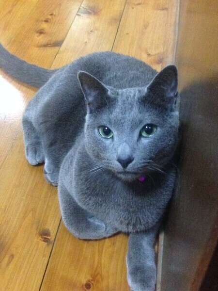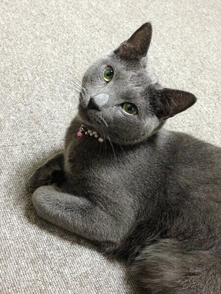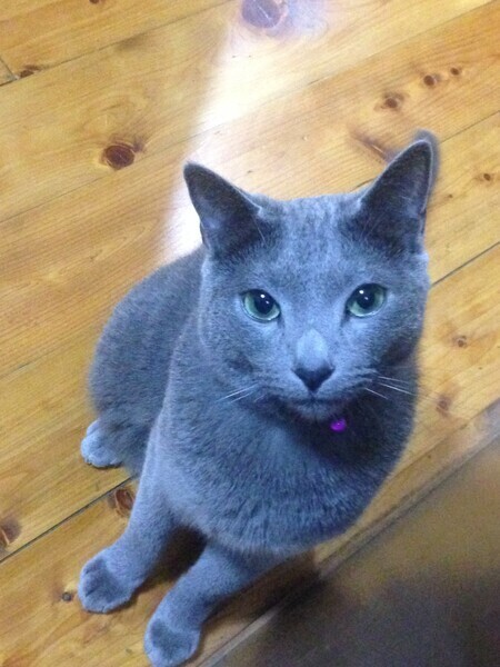| 特徴(性格など) | 生後数ヶ月の時にブリーダーさんから買いました。血統書はお金がかかるので作成しませんでしたが、両親とも正真正銘のロシアンブルーです。大人しく穏やかな性格です。誰にでも懐きます。来客があっても逃げたり隠れたりせず、懐いていきます。 とても甘えん坊で、飼い主の膝の上に乗ってきたり、夜は布団の中に入ってきたりします。 テーブルの上に乗ったり、壁や柱で爪研ぎをしたりなどしないように躾けています。 トイレも決められた場所でします。今は市販のトイレに市販の猫砂を入れたものを使用しています。名前を呼ぶと顔を見て返事をするのでとても愛着が湧きます。 お風呂や爪切りも、あまり嫌がる事なく、とても飼いやすい子です。 |