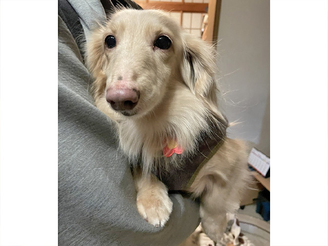 | 特徴(性格など) | ■ 基本情報 ・管理番号 【211223-52】 ・犬種・性別・名前(仮) Mダックス ♂ テオ ・年齢・体重 推定8歳 体重 5.8kg ・特徴 毛色はクリームで安心サイズの男の子です。 耳はほぼ聞こえていないようです。(生活に支障はありません) ・性格 少し繊細なところがありますが、人懐っこくて甘えん坊です。 ■ 暮らしについて ・日常過ごす場所 室内フリーで過ごしています。 ・食事 現在はダイエット中のため良質な原材料を使った低脂肪のプレミアムフードのドライを食べています。 ・トイレ トイレシートで出来ています。 ・散歩 大好きで上手に歩きます。体が重いせいか体力はありません。 毎日のお散歩をすることで少しずつ足取りも軽く距離も伸びています。 ・お留守番 フリーで問題なく出来ています。 ・外出 車酔いはありません。車内ではキャリーの中におとなしく入っていられます。 ・お手入れ 歯磨きなどは奥歯までさせてくれますが、脇など嫌な箇所のブラッシングは思わずお口が出ることもあります。 本気噛みではありません。 ・他犬との関係 普段は問題なく暮らせますが、おやつを取られそうになった時、自分が甘えている時に割り込まれた時など怒ることがあります。 犬は大好きでお散歩で出会うワンコには上手にご挨拶できます。 ・人との関係 人懐っこく甘えん坊ですが、諦めも良く暮らしやすい子です。 口の中に入れたものに執着があるようで取ろうとすると怒ることがあります。 ・お願いしたいこと 咥えたものを取ろうとすると怒るので、おもちゃを与える場合などは誤飲させないよう大きめのものを与えてください。 また誤飲の危険性があるものを届く範囲に置かないよう注意してください。 ■ 医療管理について(実施日) ・混合ワクチン 〇 ・狂犬病予防注射 × (近日接種予定) ・フィラリア抗原検査 - (12/24) ・不妊手術 〇 (引取時去勢済み) ・マイクロチップ 〇 (1/24) ・健康チェック 〇 (12/24) ・スケーリング 〇 (1/24) ・便検査 〇 (12/24) ・その他の医療措置 スケーリング時に抜歯しています。 ・必要な継続医療 咳、鼻水、くしゃみの症状があり現在お薬を飲んでいます。 肺や心臓などは特に問題はありません。定期的に病院で診てもらってください。 ・現在の一時預かり先 千葉県松戸市 ・預かりスタッフ マシュマロ ・預かりブログ ふわふわしっぽ☆ドキドキ預かりボランティア「Mダックス♂テオ」(2021/12/28~) ・https://ameblo.jp/shippo-chuuu/ ・引取時の様子 ・http://chibatarianna.jugem.jp/?eid=7434 |