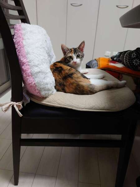 | 特徴(性格など) | チャームポイントは、大きな目 縞三毛で、鳴き声は控えめでかわいいです 猫じゃらしをくわえて「遊んで!」と持って来て、投げるとまたくわえて持ってきます! ゴロンと横になったり、膝に乗ってきたりして甘えてきます もう一匹の縞三毛猫と白黒の子と三つ子で、同時募集中です トイレ:ちゃんと猫砂で出来ます 保護時は、風邪をひいていましたが治療し、現在はとっても元気です! ヘルペスのため、たまに右目から涙が出ることがありますので、様子を見て優しく拭いてあげて下さい。 最近は、涙が出ることなく過ごしています。 かかりつけの病院のお話ですと、成長するにつれ涙は出なくなってくる場合もありますが、風邪などをひいたり涙がたくさん出ている時などは病院にかかって下さいと言われております。 また、同居猫がいる場合、成猫の場合は感染することはあまりなくすぐ治るそうです(ちなみに、我が家の先住猫とも触れ合っておりますが、感染しておりません)。 感染防止のため、同居猫は予防接種を受けておく事をお勧めします。 猫白血病・エイズ検査【陰性】 予防接種3種混合【2回済】 検便・駆虫【済】 避妊手術【済】 |