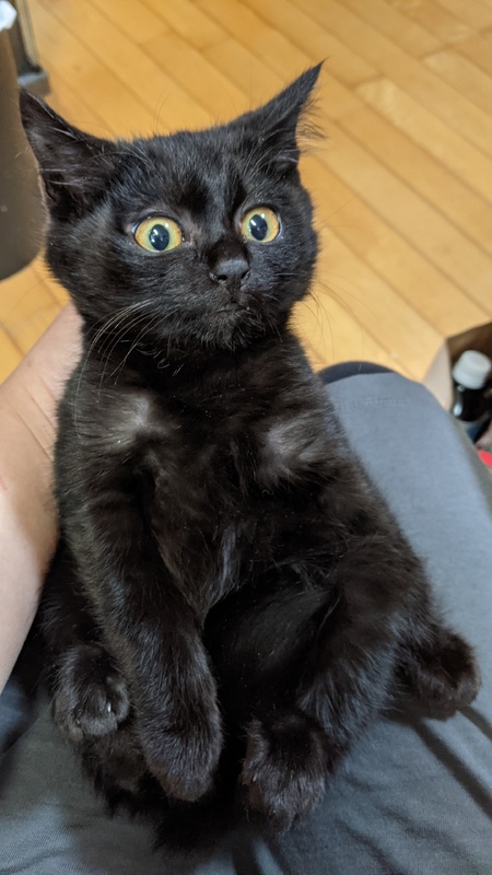 | 特徴(性格など) | 黒、幼齢猫、中尻尾、カギ尻尾 慎重派ですが、撫でるとのどを鳴らして喜んでくれます。 多頭飼育可 |