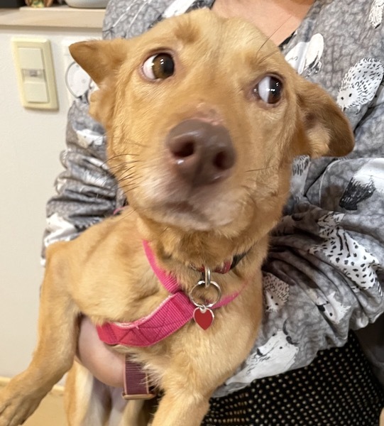 | 特徴(性格など) | MIXの『やこ』です。 (ちばわんHP掲載番号No.4346)←申込時は犬の名前とこの番号を記載し、下記内容をよくお読みの上、必ずちばわんHPからお願いします。 ※「生まれた月日」は推定です。生育環境によって誤差が生じることがあります 【毛色】茶 【体重】7.35kg(痩せすぎ) 【状態】ワクチン接種済、ノミ・ダニ駆除済、検便(-)、フィラリア(+)、狂犬病予防接種予定 【人馴】問題なし 【性格・その他】 大きな耳と短い足が可愛い女の子です。 とても甘えん坊で、尻尾フリフリいつもご機嫌です。シャンプー、足拭き、ブラッシングなどのお手入れも問題ありませんし、抱っこもできます。 昼間は室内フリーで過ごしていますが、人が動くと一緒について歩き、階段も上ります。 若い犬らしく、タオルを齧ったりとヤンチャな様子を見せています。 お散歩も好きで、人と一緒に歩くことができます。散歩で出会う他犬とは問題なく接しています。 トイレは外派で、朝夕のお散歩で済ませています。 就寝時、留守番時はケージに入れています。初めは鼻鳴きしますが、すぐにあきらめて大人しく過ごしています。クレートは苦手なようで、移動時クレートに入れると鳴いています。 とても痩せていますので、体重を増やすため、現在はドライフードに成犬用ミルクを混ぜて与えています。 フィラリア陽性です。今のところ特に症状は出ていませんが、適切な治療が必要です。 引き続き室内飼育で、脱走・逸走への細心の注意、定期的なワクチン接種やフィラリアの治療と予防などの健康管理、近況の報告を必ずお約束していただける関東圏内のご家庭で、終生家族の一員として大切にして下さる方からのお問い合わせをお待ちしています。 尚、主にお世話をされるのが高齢の方のご家庭、単身の方からのご応募はお断りさせて頂きますので、予めご了承下さい。 【預かり場所】千葉県流山市 【預かり日記】a Day in the Dog's Life https://wankono.exblog.jp 【申込み】 ちばわんの保護犬『やこ』への申し込みはhttp://www.chibawan.net/contactform_dogからお願いします。 |
