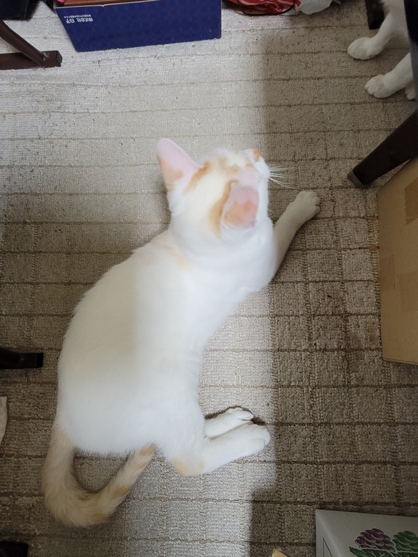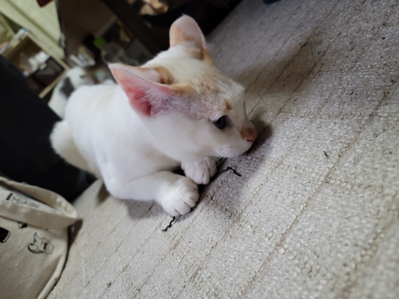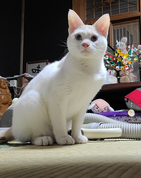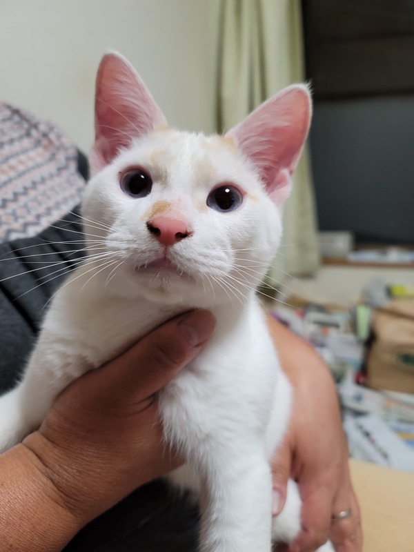 | 特徴(性格など) | 甘えん坊で、ほかの猫たちとのにゃんプロが大好きなコミュニケーションの上手い猫ちゃんです。人間にもごろニャンです。 茶白、ブルーアイ、しっぽは長め |