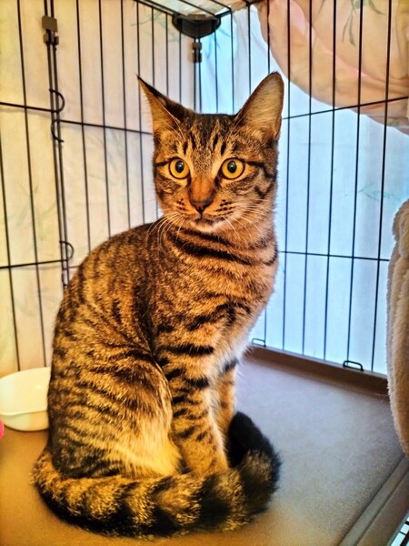 | 里親募集する理由 | 手術が間に合わずお庭で産まれてしまいまいした。 現場の手術を行った際に、子猫だったので里親募集のために保護することになりました。 ボランティアが人馴れ訓練を行ってくださり、今では人間に甘えてくれる猫になりました。 |