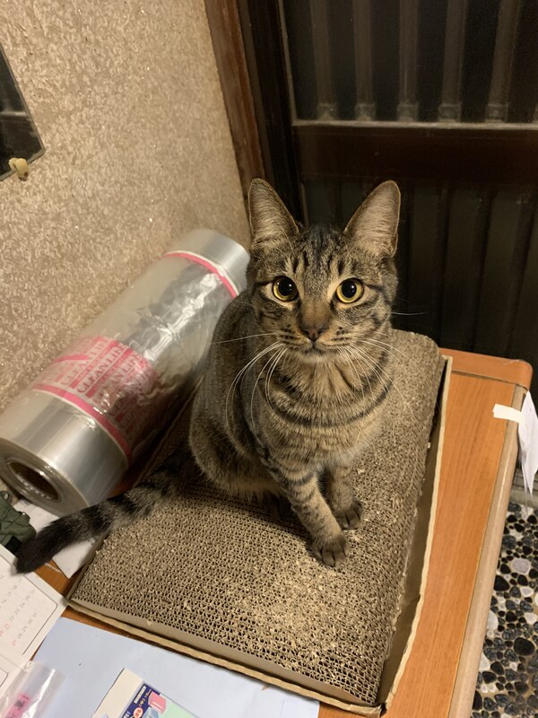 | 特徴(性格など) | 甘えん坊ほ男の子。撫でて欲しくてお膝に乗って甘えてきます。しっぽの長い美形にゃんこ。少しシャイなところがあるので、最初は緊張してしまうかもしれませんが、すぐに馴れると思います。 キジトラ、オス 成猫、多頭飼育可 人懐こい ムームーと兄弟 |