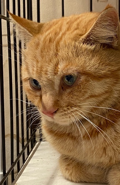 | 特徴(性格など) | 茶色がはっきりした綺麗な茶トラです。 まだこちらに来て日が浅いので、様子を見ている感じですが、一緒に保護された猫にくっついて穏やかに過ごしています。 威嚇とかはありません。 おとなしい、静かな子だと思います。 |