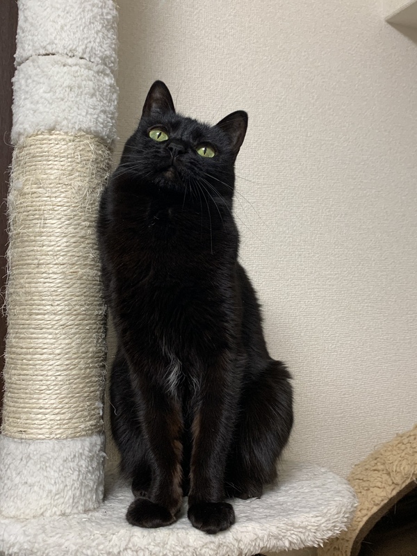 | 特徴(性格など) | お腹にツキノワグマのような三日月方の白い毛があります 全体的に綺麗な黒猫 片方の上牙が抜けています とっても甘えん坊で寝る時は一緒の布団で寝たがります お喋りさんなので話しかけると返事します 猫なのに少しタレ目気味で可愛らしいです |