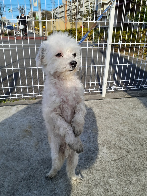 | 特徴(性格など) | 【おトイレについて】以前室内トイレ使ってた時にはそこでしてましたが、今の家ではベランダで大も小もしてもらってます、トイレ行きたくなったらそわそわして「キャンキャン」声を出すので、ベランダへの扉を開ければ自分でベランダ行ってトイレしてから戻ってきます、もちろん、一日二回ちゃんとお散歩連れて言ったら外でしますので、家の中ではほとんどしません) 【お手入れについて】いつもバリカンで体中の毛をカットします(おとなしくやらせてくれます)・今年の分の狂犬病ワクチン済み 【吠えるなど】知らない人が来たら少しだけ吠えます(誰かが来たよって教えてくれる感じです)、普段は一切吠えません |