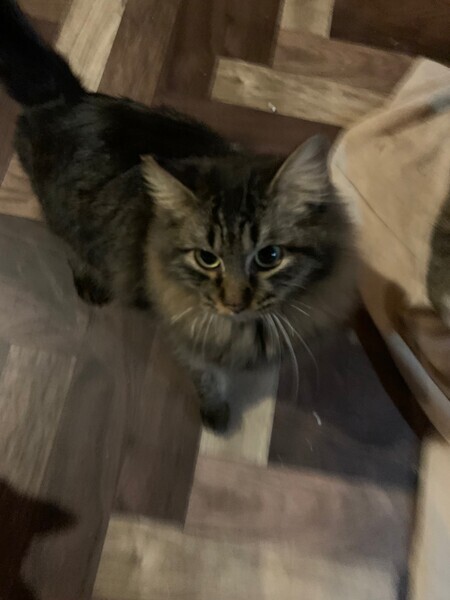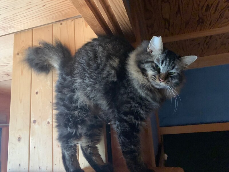 | 特徴(性格など) | 中毛長のキジ猫、とんこつちゃん(メス) 年齢は推定&情報提供で10ヵ月くらい。 まだ完全には施設に馴染んでいませんが、基本的な性格はなつこい子です。 人気の毛長ちゃんですが特に尻尾はパーマがかかっていて短く感じる部分もあります。 体も小柄です。 子供っぽさもありますが、割と落ち着いた様な性格でもあります。 |
