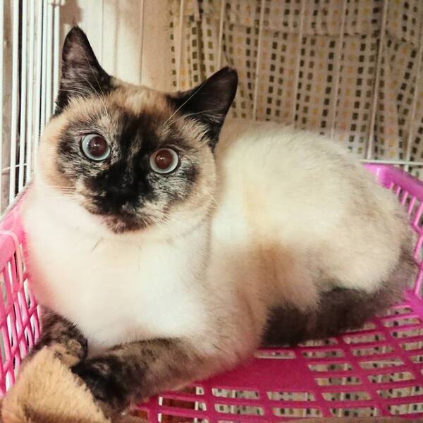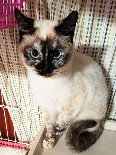 | 特徴(性格など) | ◆ミューザちゃん まだびびりのシャム風女子 ○川崎市内にて保護されました。 ○推定1歳未満くらい(2022年2月上旬時点)のシャム風の女の子です。 ○コロンとした体型の可愛い子です ○尻尾は見る限りでは真っ直ぐです。 ○警戒心強めでびびりさん。触る事は出来ますがすぐ逃げちゃいます。でも攻撃性はありません。 ○好奇心旺盛のようで、おもちゃに興味を示します。 ★ワクチン1回接種済み、不妊手術済み。 ★猫エイズ、猫白血病ともに陰性。 ○YouTubeにも動画を上げています。こちらもご覧下さい。 ミューザ https://youtu.be/Ia8r8SsXk1g ★★Zoomアプリを使用して、リモートお見合いを設定することも可能です。まずはお申込みください★★ |