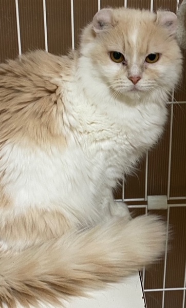 | 特徴(性格など) | 名前:シャネル 女の子 アメリカンカール 毛色:クリームホワイト 性格:初めはシャイですが慣れると甘えん坊さんで撫でられるのが大好きです。ご飯はウエット系が大好きですが、ドライもちゃんと食べてくれます。 半長毛なので3~4か月おきにシャンプーをした方がいいと思います。シャンプーの時はとてもいい子にしていますよ。 来た当時はトイレが出来ず、シーツの上で粗相をしていました。最近やっと猫トイレで出来るようになりましたので、やっと里親募集となりました。が、譲渡先でトイレ失敗もあるかもしれませんがゆっくり気長に見て下さる方にお願いしたいと思っています。 健康状態は良好です。 猫風邪をひいていましたが抗生剤で随分よくなりました。 時々目ヤニも出るので清拭が必要です。 不妊手術 3種混合ワクチン 猫エイズ・白血病検査:陰性 検便:陰性 血液検査:異常なし 下痢治療 猫風邪治療 食欲もあり排せつも順調です。 |
