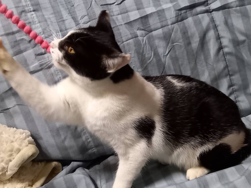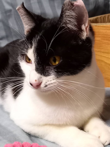 | 特徴(性格など) | 白黒のハチワレちゃんです。 ちゅーる大好き遊ぶの大好きなハチワレちゃんです。猫風邪の治療中も大人しく目薬もやらせてくれるとても良い子です。 新しいお家に行っても、すぐ慣れてくれる猫ちゃんだと思います。 |