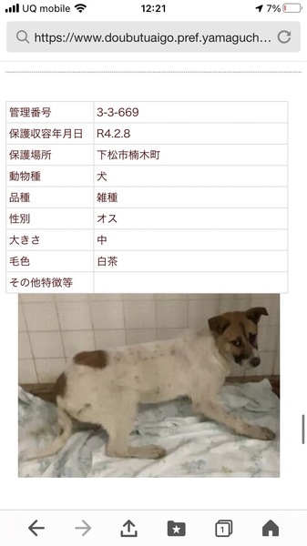 | 里親募集する理由 | 山口県周南健康福祉センターに収容されるのは野犬が多く後を立ちません 収容され1週間の期限がつけられ引き取り手がなければ山口愛護センターへ移動され殺処分になります 生きる権利を人間が奪うのは間違っていると思います 残念ですが山口県の現状は変わりません 要らない命なんてありません! 大事な命を家庭へ繋げていきたいと思っています 野犬はただただ人間が怖く怯えています ビビりさんが多いので 人馴れまで時間はかかりますが 立派な家庭犬になれます 今までもたくさんの野犬が譲渡され 幸せに暮らしています 家族として迎え愛情をそそぎ寄り添えば必ず伝わり、この子だけでなく家族みんなが幸せになります 犬って本来は昔から人間にとって素晴らしい存在です! |