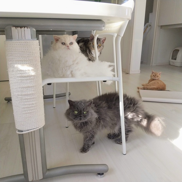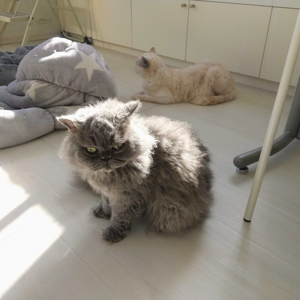 | 特徴(性格など) | セルカークレックスという猫種です。 2017-1-29生まれ、ホワイトがニホちゃん、ブルーがタケちゃん、同産児です。 ニホちゃんは、呼べばお返事をして、小走りで寄ってきて、そのままお喋りしてくれます。 タケちゃんは、お手をしてくれて、ナデナデをやめると、手を引き寄せようとします。 2匹ともお喋りですが、声は小さいです。 他の猫から叩かれてもやり返さず我慢する平和的な子です。 爪切りもシャンプーも、文句は言いますが暴れはしません。 問題行動は思い当たりません。 野良出身ではないので当然エイズ・白血病・トキソプラズマ陰性ですし、ブリーダーでしたのでPKD・HCMもない血統で繁殖しています。 書ききれませんので、セルカークレックスの特徴や飼い方は、お問合せ後に詳しくお知らせします。 |