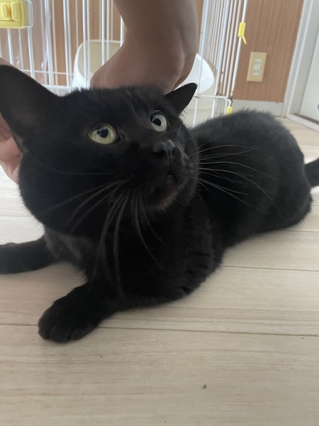 | 特徴(性格など) | 全身 黒で少し小柄です! 性格はやんちゃで甘えん坊、 抱っこされるのが大好きです! |