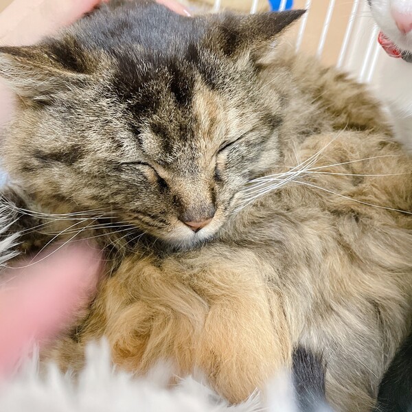 | 特徴(性格など) | 6歳になりますが、本当におとなしい、サビ柄では珍しい長毛です。 ◆健康状態 ★良好です ・避妊手術済み ・エイズ·白血病ウイルス陰性 ・3種混合ワクチン接種済み ・ノミ·ダニ駆虫済み ・検便チェック済み |