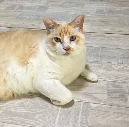 | 特徴(性格など) | 色:白(頭から背中にかけて薄い茶色が混じっています) 体重:7.5kg 猫の健康状況 感染病など:猫エイズ(陽性)・白血病(陰性)。ノミダニ駆除・駆虫済み。 体調:元気で、食欲もあります。 以前便秘になったのでロイヤルカナンの消化器サポート(可溶性繊維)をあげて います。フードをこれに替えてから排泄は良好です。毛並みも綺麗になりました。 猫エイズについて: 猫エイズは、室内飼いであれば健常猫と変わらず過ごせ、天寿をまっとうできます。 保護時に去勢手術したのですが、その際の血液検査で猫エイズ陽性が分かりました。 保護してから3年経ちますが、体調もよく元気にしています。 現在は保護猫6匹と暮らしていますが、他への感染もありません。 猫の特徴など 性格:人懐っこく、慣れるとゴロゴロいいながら一緒に寝れるくらい甘えます。 とても穏やかなので他の猫からも慕われ、よくグルーミングしたりされたりしています。 人といるのも好きです。うちでは一番大きい猫ですが、他を威嚇するなどもしたことが なく新入りにも優しい落ち着いた猫です。 |