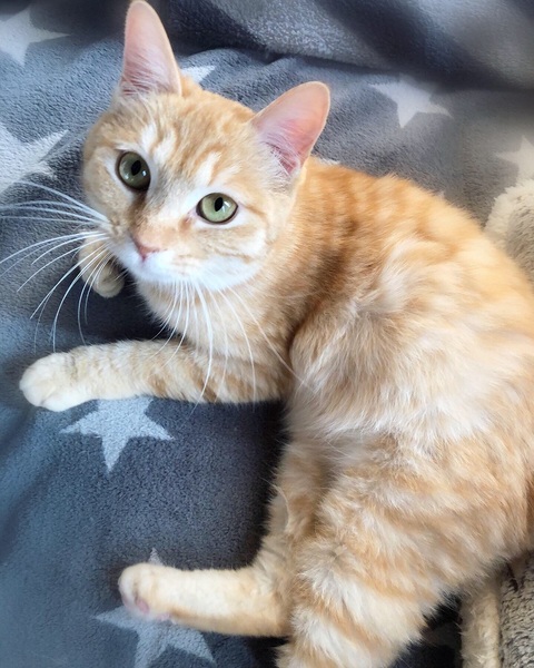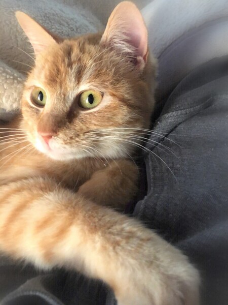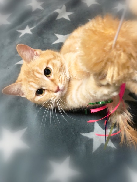 | 特徴(性格など) | 淡い色・茶トラの女の子 少し毛が長くふわふわ丸顔 とんでもない甘えん坊で膝の上、抱っこも大好き。 人がそばにいればいつもゴロゴロです。 オモチャで遊ぶ時は一転、真剣な表情で一生懸命追いかけます。 ※相性を見る必要があるため1匹での生活を希望します。 |