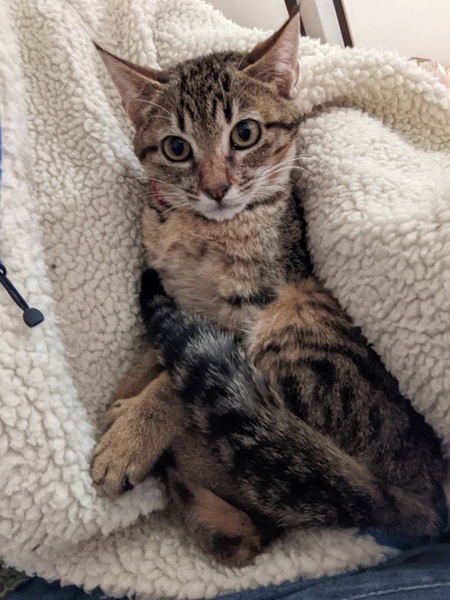 | 特徴(性格など) | 【特徴】 綺麗なオレンジと黒の入った キジトラです。 しっぽも真っ直ぐで長い♡ 【性格】 怖がりで寂しがり屋 猫の友達大好き 人にはあまり慣れてません お留守番時間が少なくて沢山遊んてくれる里親様だと慣れやすいと思います。 噛んだり叩いたりはしませんがビビりなので、まだ人の気配で逃げます。 最初の内はケージ飼育推奨です。 こんな子を自分の手でベタ慣れにしたい方! グレースより早めに保護出来た兄妹&従姉妹の4匹は全員新しい家族の元へ行き幸せに暮らしてるので、何れは懐くと信じてます。 |