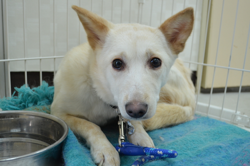 | 特徴(性格など) | クリーム系で小柄(12キロ程度)な雑種です。理解力の高い子で、群れでの生活に慣れています。野犬独特のビビりさんですが、慣れると自分から人に寄って来て手を舐めます。大人しく、怖がりなので気長にお付き合い出来る里親様を募集します。 | ||