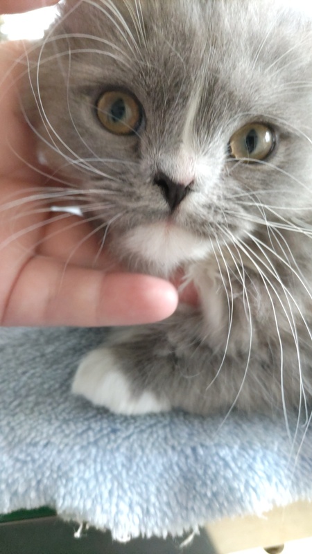 | 特徴(性格など) | グレー・ホワイトでおててとあんよにかわいいくつ下模様の男の子です 人懐っこく甘えたでよじよじ登ったり腕枕でごろごろするのが好きです お父さん、お母さんともにマンチカン×スコテイッシュmixであんよがやや短めです |