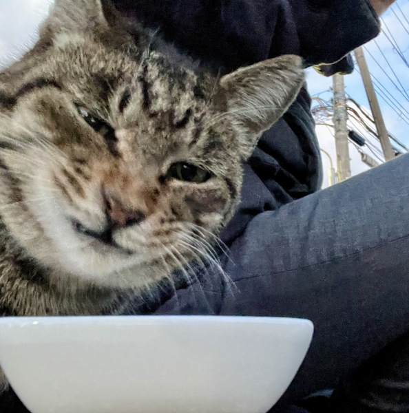 | 特徴(性格など) | カラスが帰巣した夕方過ぎ、このエリアの給餌が始まります。 お世話係を大騒ぎで歓迎してくれるのが、看板猫のキジトラ姉妹、 キッキちゃんとジッジちゃんです。 左耳にカットが入っているこちらの子がジッジちゃんです。 避妊手術済みの女の子です。 年齢はよく分かりません。 左下の犬歯が抜けており、 ひょっとするとかなりのご高齢なのかもしれません。 それでもカリカリに飛びつき、お腹いっぱい食べてくれます。 丸くポテっとしたジッジちゃんですが、 やはりこの寒さと風は体に堪えています。 お食事が終わってからも側を離れようとしません。 人間が大好きで、いつまでも撫でさせてくれ、 別れの時は毎回後ろ髪引かれます。 このジッジちゃんとキッキちゃん、 いつも一緒にいた二人ですので、 できれば一緒におうちへ迎えて下さる方を希望しています。 二頭は無理だけれど、一頭だけなら、、という方も もちろん大歓迎です。 お声掛けお待ちしております。 どうぞ宜しくお願い致します。 池田 |