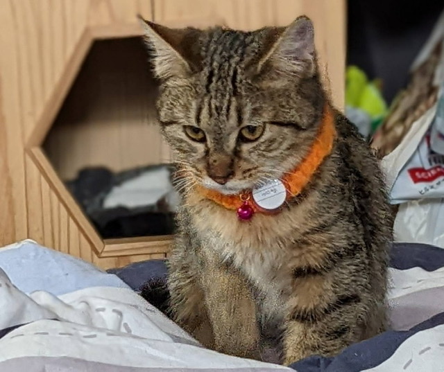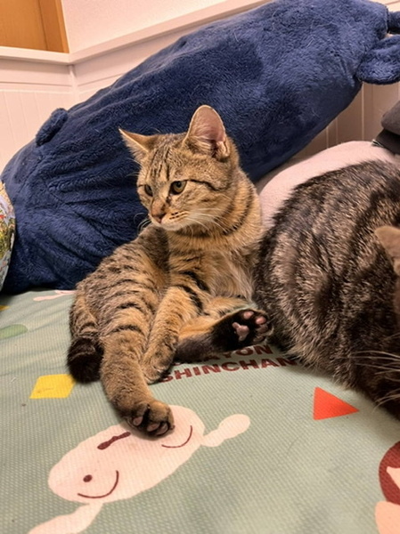 | 特徴(性格など) | 【特徴】 ふわふわモコモコな茶系のキジトラ♪しっぽは·····短めで鍵しっぽです。食欲は◎ 排泄も◎!…遊ぶのも好き! 【性格】 おとなしそうに見えて、元気で良く鳴きます。にぁーにぁーと高めのトーンで鳴くので赤ちゃんみたいです。 1人では寂しくて鳴くと思うので、仲良しか兄弟とペアが希望です。 優しくて甘えさせてくれる先住サンが一緒なら大丈夫かも知れません。 お留守番時間が少なくて沢山遊んでくれる里親様だと慣れやすいと思います。 |