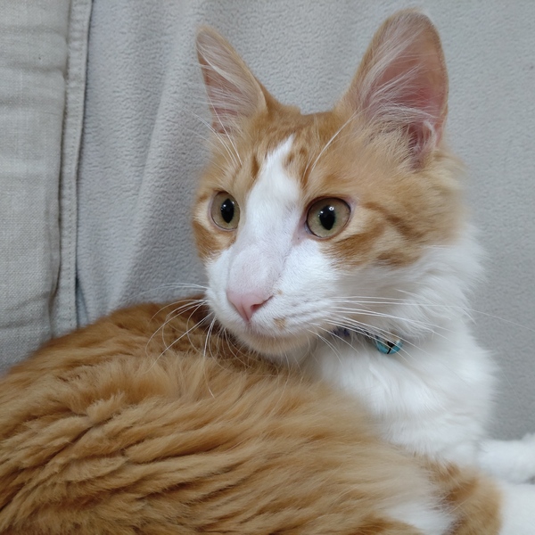 | 特徴(性格など) | 茶白猫 毛並みが柔らかく、多少長毛です。 元気で甘えん坊です |