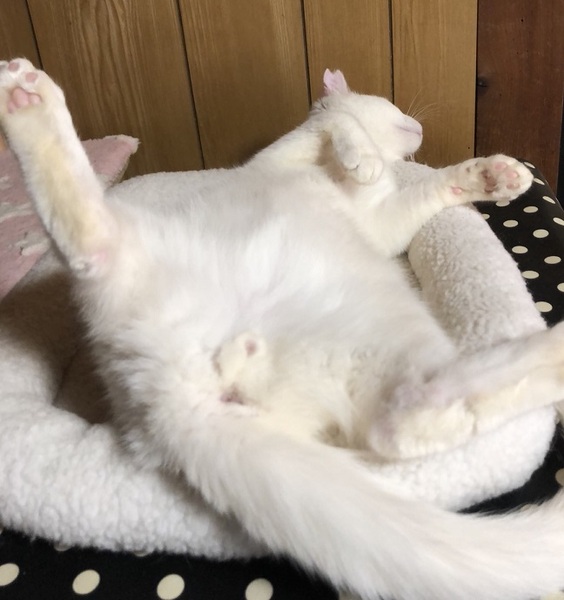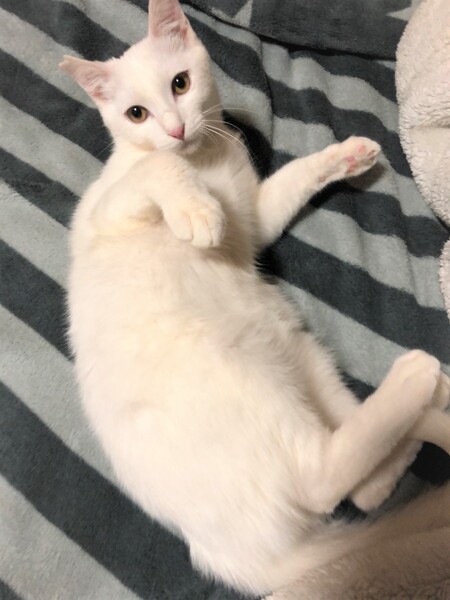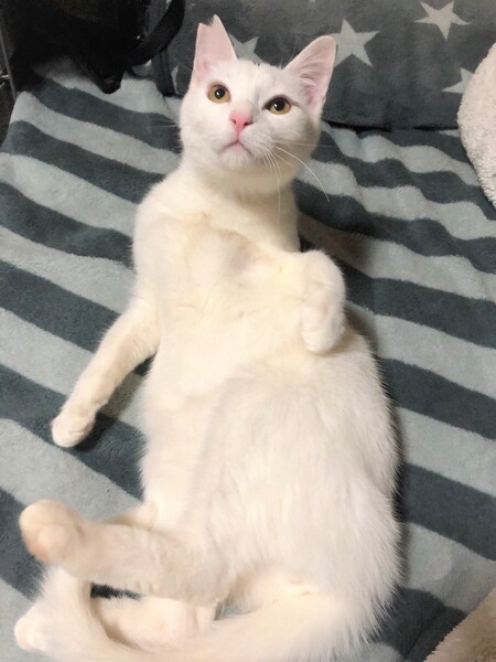 | 特徴(性格など) | ややアイボリー色に近い少しだけ被毛が長い男の子 環境に慣れるまで少し時間が必要です。 移動して直ぐは怖がりののんきさん、現在は完全にのんき者です。 撫でるとくるくる反転しバンザイをします。 ご飯の気配を察知すると、じーっとお皿の前からこちらを見続けていたりします。 オモチャを見つけてはわくわく・ご飯でわくわくの分かりやすい子です。 |