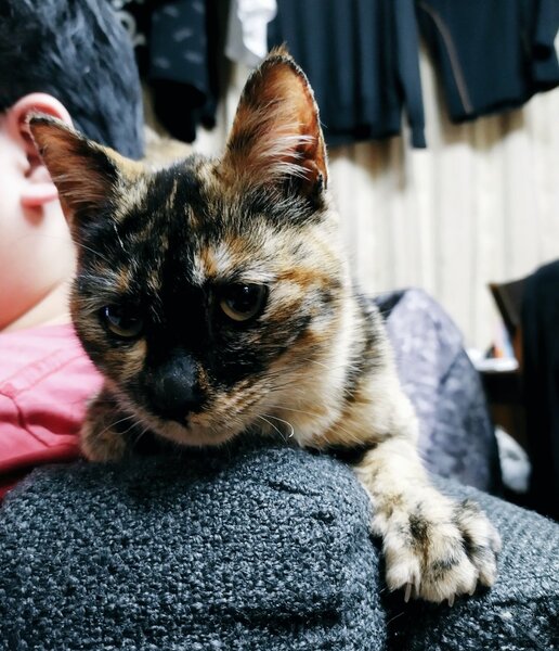 | 特徴(性格など) | スリスリ甘えんぼのサビ猫ちゃんです。 鳴き声がとても可愛く 長めのかぎしっぽです。 とても人慣れしています。 甘噛み癖がありますが 酷く噛んだりは今のとこありません。 痩せていて小柄ですが元気です。 初期検査は異常なく エイズ、白血病なども陰性です。 ダニ、ノミの薬 投与しました。 予防接種と避妊手術は 3月中に行う予定です。 掃除機や他の猫を怖がることも無く とっても大人しいです! |