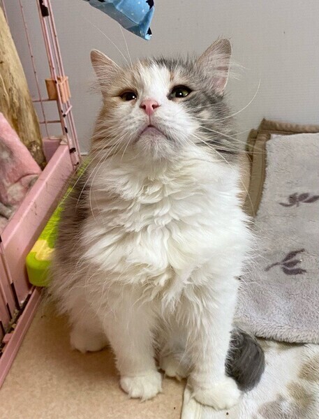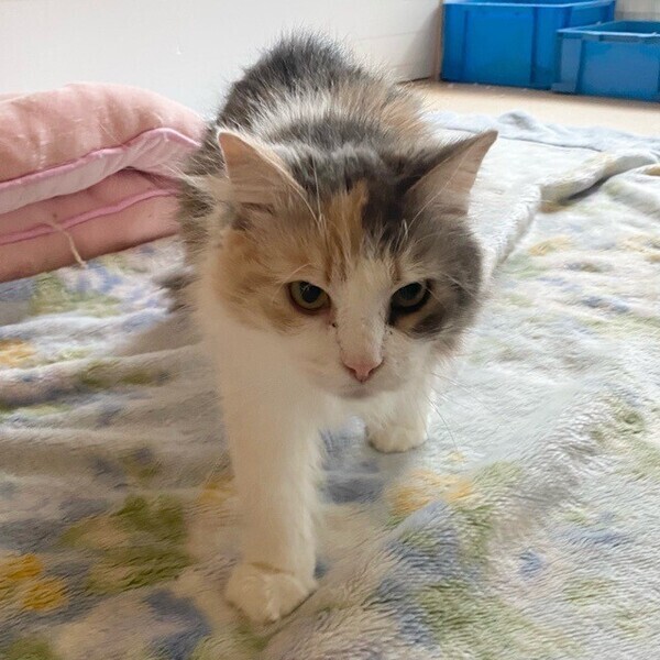 | 特徴(性格など) | お茶目な「めんたい」ちゃん❤ 抱っこは苦手、自分からスリスリ甘えるの苦手だけど、マイペースで穏やかな女のコ♪ 物静かで、行動力のある甘えっコになる予感♪ 現在、ドライフードを24時間の置き餌として栄養補給、水分補給のため一日2回パウチを与えています。 <推定誕生日:2017年頃> |