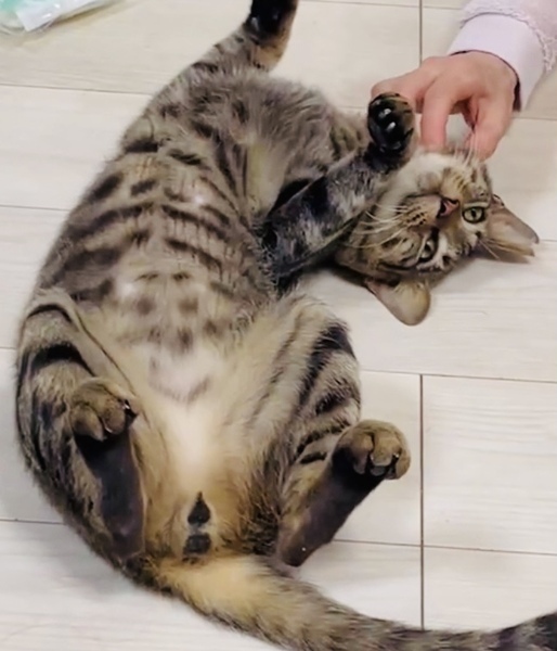 | 特徴(性格など) | ・推定3歳くらいのオス ・キジ猫 ・エイズ白血病陰性(保護後1回目検査) ・とっても人懐っこい 人が大好き ・抱っこOK ・他の猫ちゃんにもフレンドリー ・長いシッポ ・スリムな体型 ・外に出たがる(脱走対策必須) 保護時もチュールで誘導すると、自分でキャリーに入ってくれました。保護先にもすぐに馴染み、順応性が高く飼いやすい猫ちゃんだと思います。 |