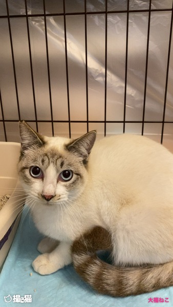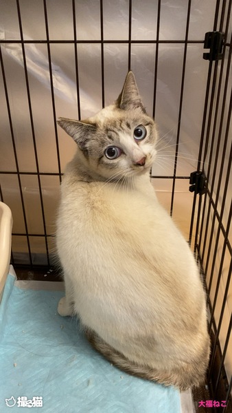 | 特徴(性格など) | シャム柄で恰幅のよい男の子 ビビりではありますが攻撃的な面はありません。 さくら耳のカットが入っています。 シャンプーもしてあり、毛並みがよく毛量もあるふさふさした可愛い印象です。 |