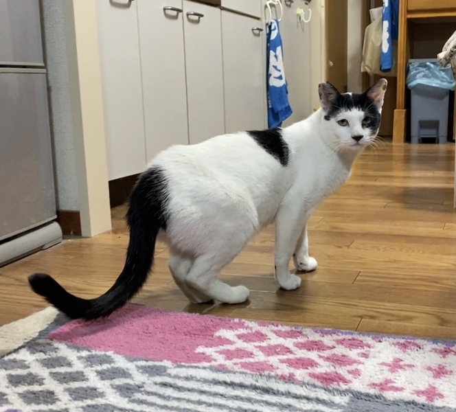| 特徴(性格など) | 白黒。しっぽは真っ黒。愛嬌のあるお顔! 元気。甘えん坊。かしこい。やさしい。 保護当初はとても怯えていましたが、いまは慣れて元気よく遊んで人にも寄ってきます。愛嬌たっぷり、猫同士もうまくやれるまだ成人前の若猫の感じですので、2匹目へのお迎えも大丈夫かと思います。猫じゃらしが大好き。外には出ようとしません。室内飼いがおすすめです。猫トイレのしつけもできています。爪切りもさせてくれます。 |