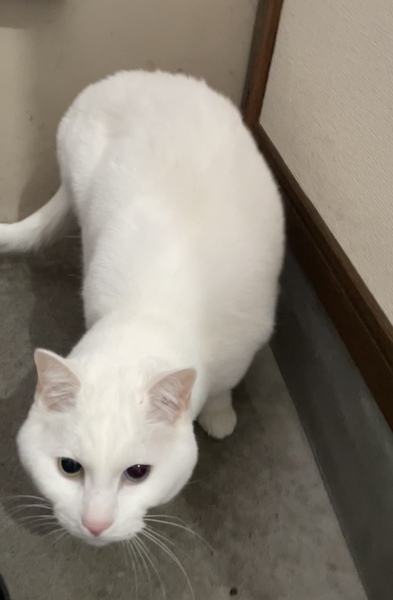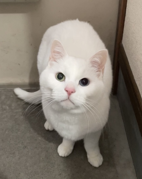 | 特徴(性格など) | ・右目黄色、左目青のオッドアイ ・大柄 ・とても人馴れしていて初対面でも膝に乗ってきます ・ただ触られるのはあまり好きではないです ・どんなフードもよく食べ、現在健康です |
